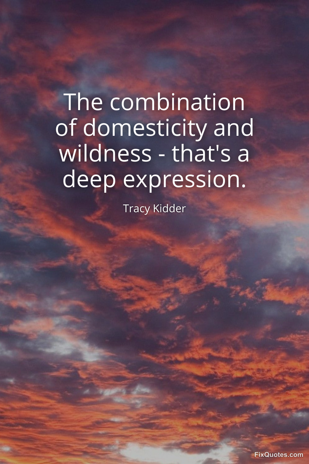 Kidder, Tracy. (2026, January 16). The combination of domesticity and wildness - that's a deep expression. FixQuotes. https://fixquotes.com/quotes/the-combination-of-domesticity-and-wildness-129447/
