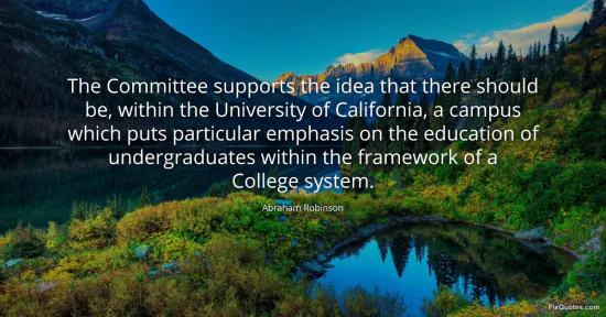 Robinson, Abraham. (2026, January 16). The Committee supports the idea that there should be, within the University of California, a campus which puts particular emphasis on the education of undergraduates within the framework of a College system. FixQuotes. https://fixquotes.com/quotes/the-committee-supports-the-idea-that-there-should-121839/