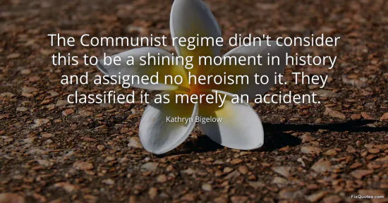 Bigelow, Kathryn. "The Communist regime didn't consider this to be a shining moment in history and assigned no heroism to it. They classified it as merely an accident." FixQuotes. January 16, 2026. https://fixquotes.com/quotes/the-communist-regime-didnt-consider-this-to-be-a-87531/.