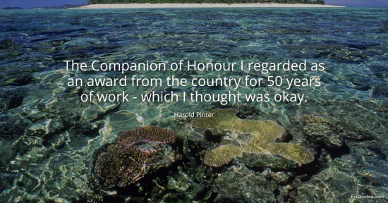 Pinter, Harold. (2026, January 17). The Companion of Honour I regarded as an award from the country for 50 years of work - which I thought was okay. FixQuotes. https://fixquotes.com/quotes/the-companion-of-honour-i-regarded-as-an-award-29492/