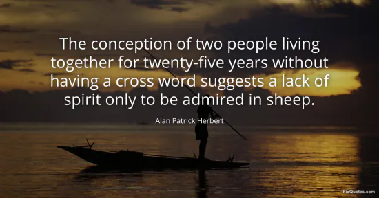 Herbert, Alan Patrick. "The conception of two people living together for twenty-five years without having a cross word suggests a lack of spirit only to be admired in sheep." FixQuotes. January 15, 2026. https://fixquotes.com/quotes/the-conception-of-two-people-living-together-for-56870/.