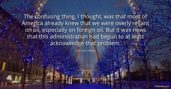 Hollen, Chris Van. (2026, January 15). The confusing thing, I thought, was that most of America already knew that we were overly reliant on oil, especially on foreign oil. But it was news that this administration had begun to at least acknowledge that problem. FixQuotes. https://fixquotes.com/quotes/the-confusing-thing-i-thought-was-that-most-of-167183/