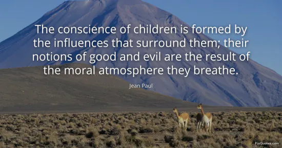 Paul, Jean. "The conscience of children is formed by the influences that surround them; their notions of good and evil are the result of the moral atmosphere they breathe." FixQuotes. January 15, 2026. https://fixquotes.com/quotes/the-conscience-of-children-is-formed-by-the-49824/.