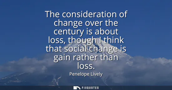 "The consideration of change over the century is about loss, though I think that social change is gain rather than loss"