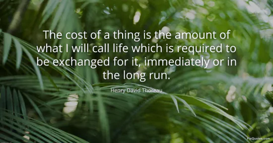 Thoreau, Henry David. "The cost of a thing is the amount of what I will call life which is required to be exchanged for it, immediately or in the long run." FixQuotes. January 14, 2026. https://fixquotes.com/quotes/the-cost-of-a-thing-is-the-amount-of-what-i-will-28762/.