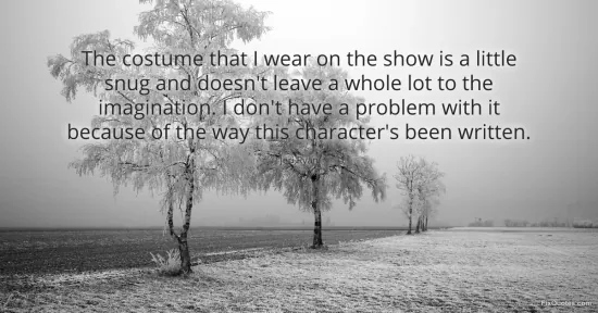"The costume that I wear on the show is a little snug and doesn't leave a whole lot to the imagination. I don't have a problem with it because of the way this character's been written." FixQuotes, 15 Jan. 2026, https://fixquotes.com/quotes/the-costume-that-i-wear-on-the-show-is-a-little-142919/. Accessed 8 Feb. 2026.