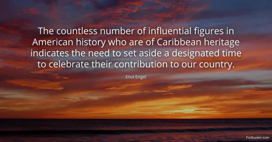 Engel, Eliot. "The countless number of influential figures in American history who are of Caribbean heritage indicates the need to set aside a designated time to celebrate their contribution to our country." FixQuotes. January 17, 2026. https://fixquotes.com/quotes/the-countless-number-of-influential-figures-in-45758/.