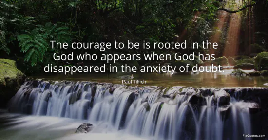 Tillich, Paul. "The courage to be is rooted in the God who appears when God has disappeared in the anxiety of doubt." FixQuotes. January 15, 2026. https://fixquotes.com/quotes/the-courage-to-be-is-rooted-in-the-god-who-22978/.