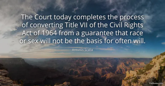 Scalia, Antonin. "The Court today completes the process of converting Title VII of the Civil Rights Act of 1964 from a guarantee that race or sex will not be the basis for often will." FixQuotes. January 15, 2026. https://fixquotes.com/quotes/the-court-today-completes-the-process-of-166989/.