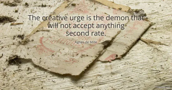 Mille, Agnes de. "The creative urge is the demon that will not accept anything second rate." FixQuotes. January 16, 2026. https://fixquotes.com/quotes/the-creative-urge-is-the-demon-that-will-not-125889/.