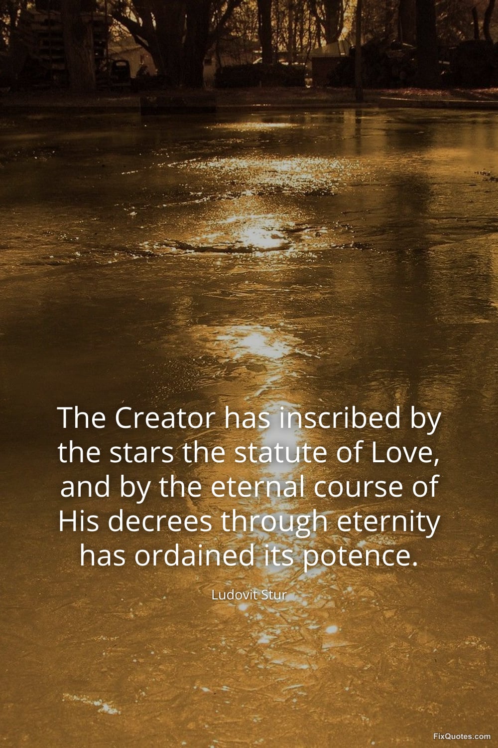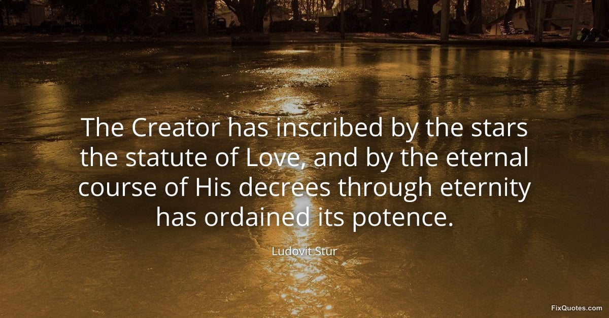 Stur, Ludovit. "The Creator has inscribed by the stars the statute of Love, and by the eternal course of His decrees through eternity has ordained its potence." FixQuotes. March 8, 2026. https://fixquotes.com/quotes/the-creator-has-inscribed-by-the-stars-the-185749/.