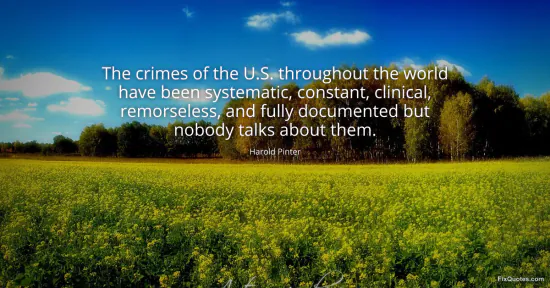 Pinter, Harold. "The crimes of the U.S. throughout the world have been systematic, constant, clinical, remorseless, and fully documented but nobody talks about them." FixQuotes. January 17, 2026. https://fixquotes.com/quotes/the-crimes-of-the-us-throughout-the-world-have-35793/.