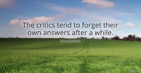 Gershon, Gina. (2026, January 17). The critics tend to forget their own answers after a while. FixQuotes. https://fixquotes.com/quotes/the-critics-tend-to-forget-their-own-answers-59570/