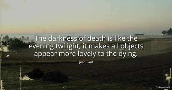 Paul, Jean. (2026, January 17). The darkness of death is like the evening twilight; it makes all objects appear more lovely to the dying. FixQuotes. https://fixquotes.com/quotes/the-darkness-of-death-is-like-the-evening-54977/