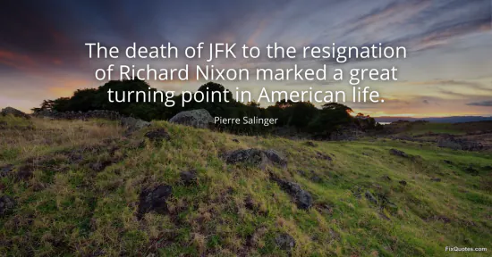 Salinger, Pierre. (2026, January 17). The death of JFK to the resignation of Richard Nixon marked a great turning point in American life. FixQuotes. https://fixquotes.com/quotes/the-death-of-jfk-to-the-resignation-of-richard-70949/