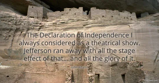 Adams, John. (n.d.). The Declaration of Independence I always considered as a theatrical show. Jefferson ran away with all the stage effect of that... and all the glory of it. FixQuotes. https://fixquotes.com/quotes/the-declaration-of-independence-i-always-16530/