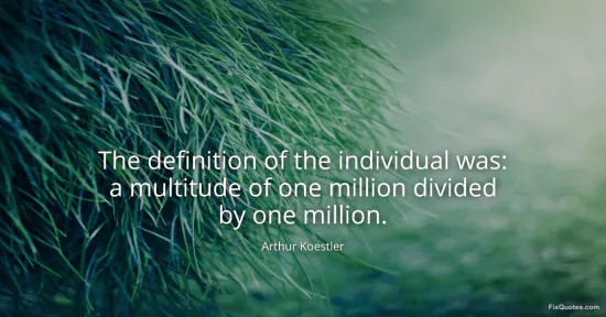 Koestler, Arthur. "The definition of the individual was: a multitude of one million divided by one million." FixQuotes. January 16, 2026. https://fixquotes.com/quotes/the-definition-of-the-individual-was-a-multitude-109167/.