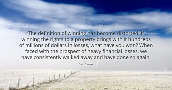 Ebersol, Dick. "The definition of winning has become distorted. If winning the rights to a property brings with it hundreds of millions of dollars in losses, what have you won? When faced with the prospect of heavy financial losses, we have consistently walked away and have done so again." FixQuotes. January 16, 2026. https://fixquotes.com/quotes/the-definition-of-winning-has-become-distorted-if-135034/.