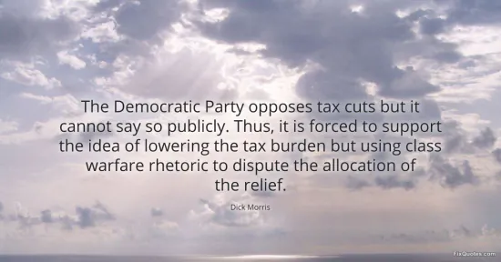 Morris, Dick. (2026, January 17). The Democratic Party opposes tax cuts but it cannot say so publicly. Thus, it is forced to support the idea of lowering the tax burden but using class warfare rhetoric to dispute the allocation of the relief. FixQuotes. https://fixquotes.com/quotes/the-democratic-party-opposes-tax-cuts-but-it-67846/