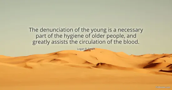 Smith, Logan P. (2026, January 15). The denunciation of the young is a necessary part of the hygiene of older people, and greatly assists the circulation of the blood. FixQuotes. https://fixquotes.com/quotes/the-denunciation-of-the-young-is-a-necessary-part-155322/