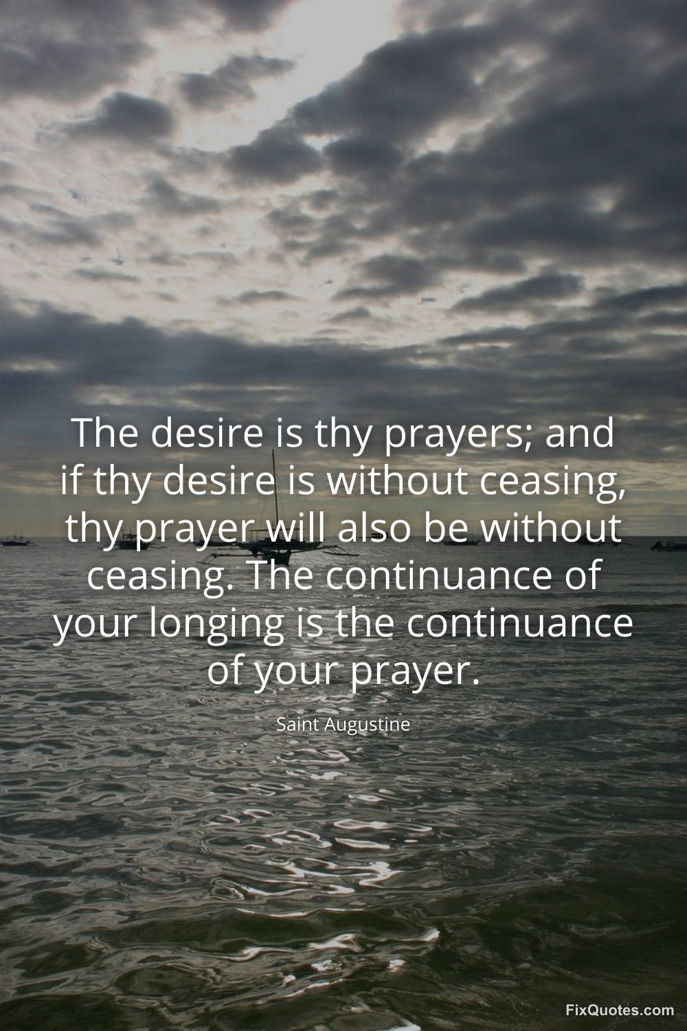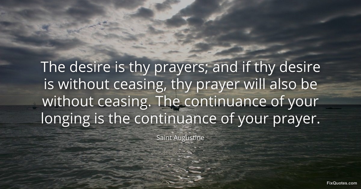 "The desire is thy prayers; and if thy desire is without ceasing, thy prayer will also be without ceasing. The continuance of your longing is the continuance of your prayer"