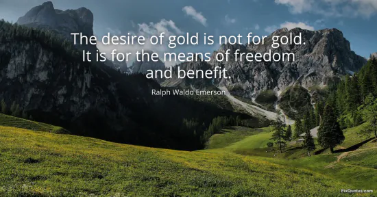 Emerson, Ralph Waldo. "The desire of gold is not for gold. It is for the means of freedom and benefit." FixQuotes. January 17, 2026. https://fixquotes.com/quotes/the-desire-of-gold-is-not-for-gold-it-is-for-the-28858/.