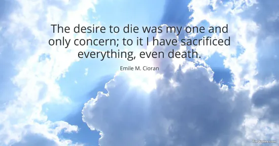 Cioran, Emile M. "The desire to die was my one and only concern; to it I have sacrificed everything, even death." FixQuotes. January 15, 2026. https://fixquotes.com/quotes/the-desire-to-die-was-my-one-and-only-concern-to-50732/.