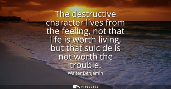 "The destructive character lives from the feeling, not that life is worth living, but that suicide is not worth the trouble"