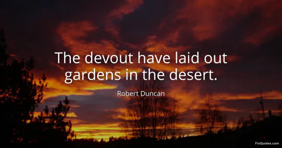 Duncan, Robert. (n.d.). The devout have laid out gardens in the desert. FixQuotes. https://fixquotes.com/quotes/the-devout-have-laid-out-gardens-in-the-desert-161673/