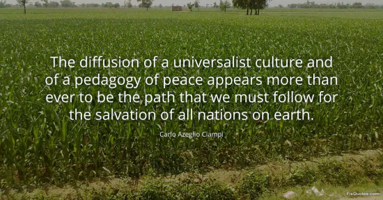 Ciampi, Carlo Azeglio. (2026, January 15). The diffusion of a universalist culture and of a pedagogy of peace appears more than ever to be the path that we must follow for the salvation of all nations on earth. FixQuotes. https://fixquotes.com/quotes/the-diffusion-of-a-universalist-culture-and-of-a-169922/