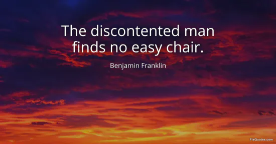 Franklin, Benjamin. (2026, January 14). The discontented man finds no easy chair. FixQuotes. https://fixquotes.com/quotes/the-discontented-man-finds-no-easy-chair-135820/