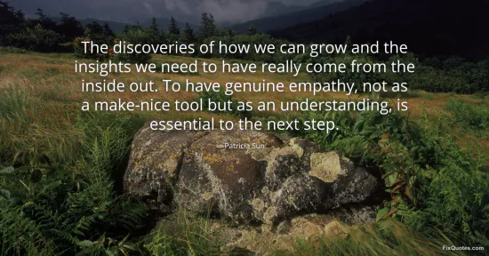 Sun, Patricia. (2026, January 16). The discoveries of how we can grow and the insights we need to have really come from the inside out. To have genuine empathy, not as a make-nice tool but as an understanding, is essential to the next step. FixQuotes. https://fixquotes.com/quotes/the-discoveries-of-how-we-can-grow-and-the-82474/