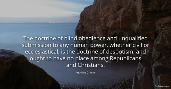 Grimke, Angelina. (2026, January 16). The doctrine of blind obedience and unqualified submission to any human power, whether civil or ecclesiastical, is the doctrine of despotism, and ought to have no place among Republicans and Christians. FixQuotes. https://fixquotes.com/quotes/the-doctrine-of-blind-obedience-and-unqualified-131715/
