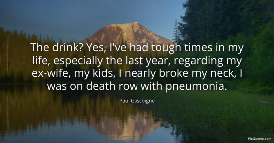 Gascoigne, Paul. "The drink? Yes, I've had tough times in my life, especially the last year, regarding my ex-wife, my kids, I nearly broke my neck, I was on death row with pneumonia." FixQuotes. January 16, 2026. https://fixquotes.com/quotes/the-drink-yes-ive-had-tough-times-in-my-life-92844/.