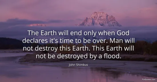 Shimkus, John. (2026, February 18). The Earth will end only when God declares it's time to be over. Man will not destroy this Earth. This Earth will not be destroyed by a flood. FixQuotes. https://fixquotes.com/quotes/the-earth-will-end-only-when-god-declares-its-62817/