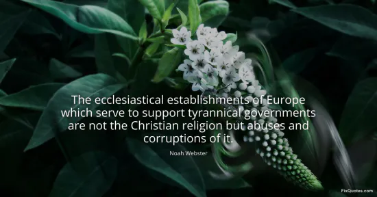 Webster, Noah. (2026, January 15). The ecclesiastical establishments of Europe which serve to support tyrannical governments are not the Christian religion but abuses and corruptions of it. FixQuotes. https://fixquotes.com/quotes/the-ecclesiastical-establishments-of-europe-which-163155/