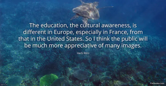 Ritts, Herb. (2026, January 15). The education, the cultural awareness, is different in Europe, especially in France, from that in the United States. So I think the public will be much more appreciative of many images. FixQuotes. https://fixquotes.com/quotes/the-education-the-cultural-awareness-is-different-169433/