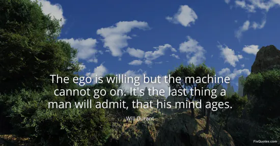 Durant, Will. "The ego is willing but the machine cannot go on. It's the last thing a man will admit, that his mind ages." FixQuotes. January 16, 2026. https://fixquotes.com/quotes/the-ego-is-willing-but-the-machine-cannot-go-on-134897/.