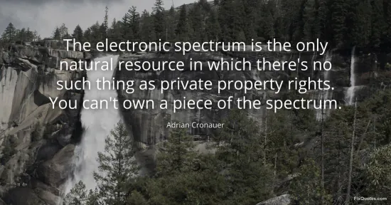 Cronauer, Adrian. (2026, January 16). The electronic spectrum is the only natural resource in which there's no such thing as private property rights. You can't own a piece of the spectrum. FixQuotes. https://fixquotes.com/quotes/the-electronic-spectrum-is-the-only-natural-138614/