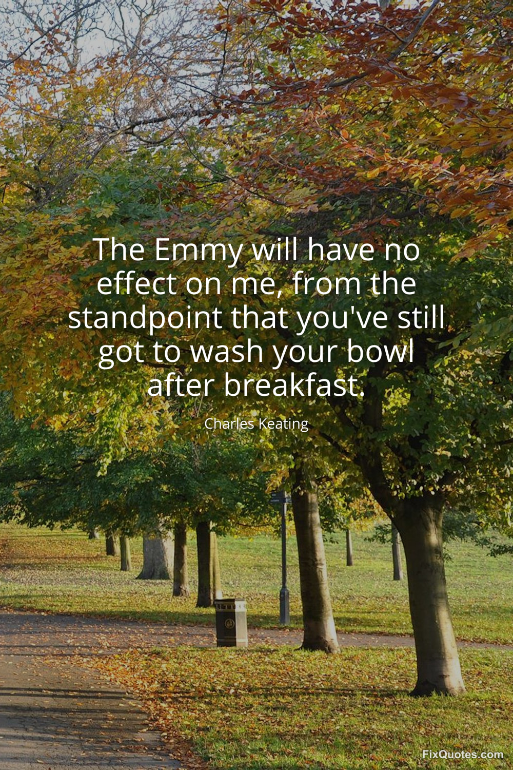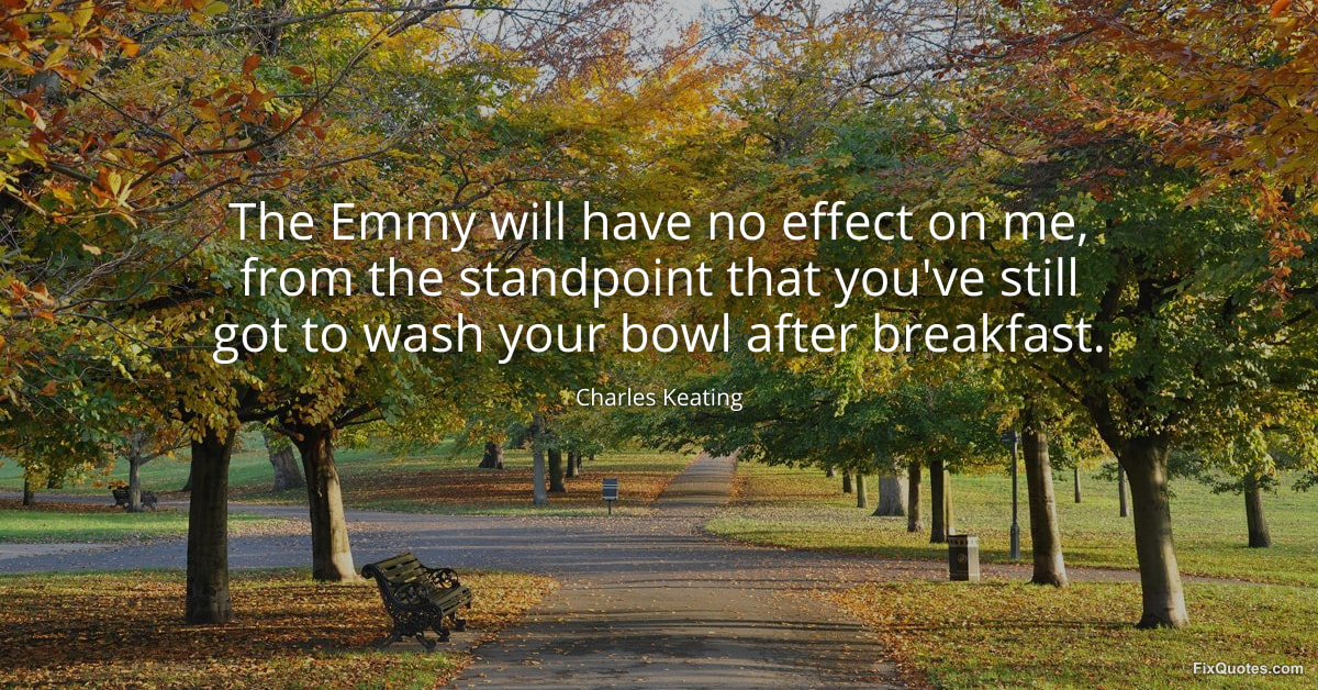 Keating, Charles. "The Emmy will have no effect on me, from the standpoint that you've still got to wash your bowl after breakfast." FixQuotes. January 16, 2026. https://fixquotes.com/quotes/the-emmy-will-have-no-effect-on-me-from-the-109711/.