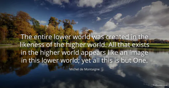 Montaigne, Michel de. (2026, January 17). The entire lower world was created in the likeness of the higher world. All that exists in the higher world appears like an image in this lower world; yet all this is but One. FixQuotes. https://fixquotes.com/quotes/the-entire-lower-world-was-created-in-the-33363/
