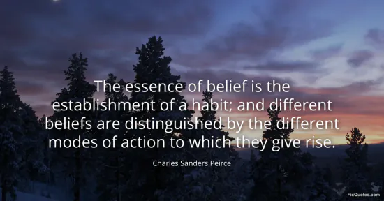"The essence of belief is the establishment of a habit; and different beliefs are distinguished by the different modes of action to which they give rise." FixQuotes, 17 Jan. 2026, https://fixquotes.com/quotes/the-essence-of-belief-is-the-establishment-of-a-40019/. Accessed 12 Feb. 2026.