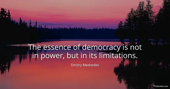 Medvedev, Dmitry. (2026, January 15). The essence of democracy is not in power, but in its limitations. FixQuotes. https://fixquotes.com/quotes/the-essence-of-democracy-is-not-in-power-but-in-171638/
