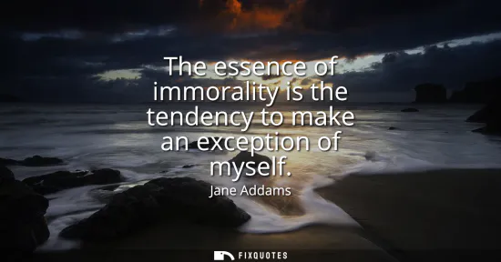 The insight grows out of Addams's Progressive Era work building a social ethic for a diverse democracy. At Hull House she rejected charitable distance and chose shared life, precisely to avoid the moral hazards of superior standing. She criticized elites who soothed their conscience with benevolence while defending labor practices, political machines, or legal loopholes that exempted them from the burdens their neighbors carried. The settlement ideal insisted that moral judgment must be embedded in relationships; living alongside others strips away the illusions that justify special treatment for oneself. In that light, immorality shows up in everyday ways: the driver who believes a busy schedule warrants ignoring laws, the taxpayer who rationalizes an extra deduction, the leader who treats office as immunity rather than stewardship.