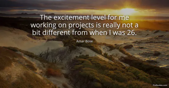 Bose, Amar. "The excitement level for me working on projects is really not a bit different from when I was 26." FixQuotes. January 18, 2026. https://fixquotes.com/quotes/the-excitement-level-for-me-working-on-projects-9721/.