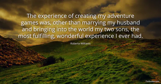 Williams, Roberta. "The experience of creating my adventure games was, other than marrying my husband and bringing into the world my two sons, the most fulfilling, wonderful experience I ever had." FixQuotes. January 16, 2026. https://fixquotes.com/quotes/the-experience-of-creating-my-adventure-games-was-106176/.