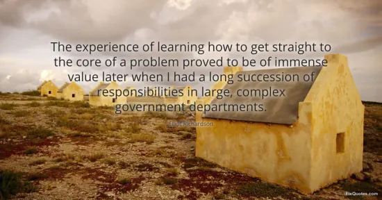 Richardson, Elliot. (2026, January 17). The experience of learning how to get straight to the core of a problem proved to be of immense value later when I had a long succession of responsibilities in large, complex government departments. FixQuotes. https://fixquotes.com/quotes/the-experience-of-learning-how-to-get-straight-to-73061/