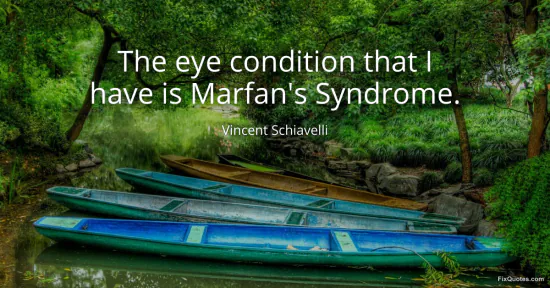 Schiavelli, Vincent. (2026, January 16). The eye condition that I have is Marfan's Syndrome. FixQuotes. https://fixquotes.com/quotes/the-eye-condition-that-i-have-is-marfans-syndrome-117747/