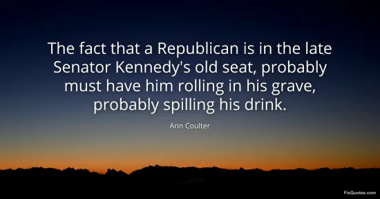 Coulter, Ann. (2026, February 20). The fact that a Republican is in the late Senator Kennedy's old seat, probably must have him rolling in his grave, probably spilling his drink. FixQuotes. https://fixquotes.com/quotes/the-fact-that-a-republican-is-in-the-late-senator-3874/