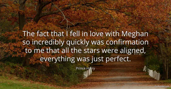 Harry, Prince. "The fact that I fell in love with Meghan so incredibly quickly was confirmation to me that all the stars were aligned, everything was just perfect." FixQuotes. January 15, 2026. https://fixquotes.com/quotes/the-fact-that-i-fell-in-love-with-meghan-so-171817/.